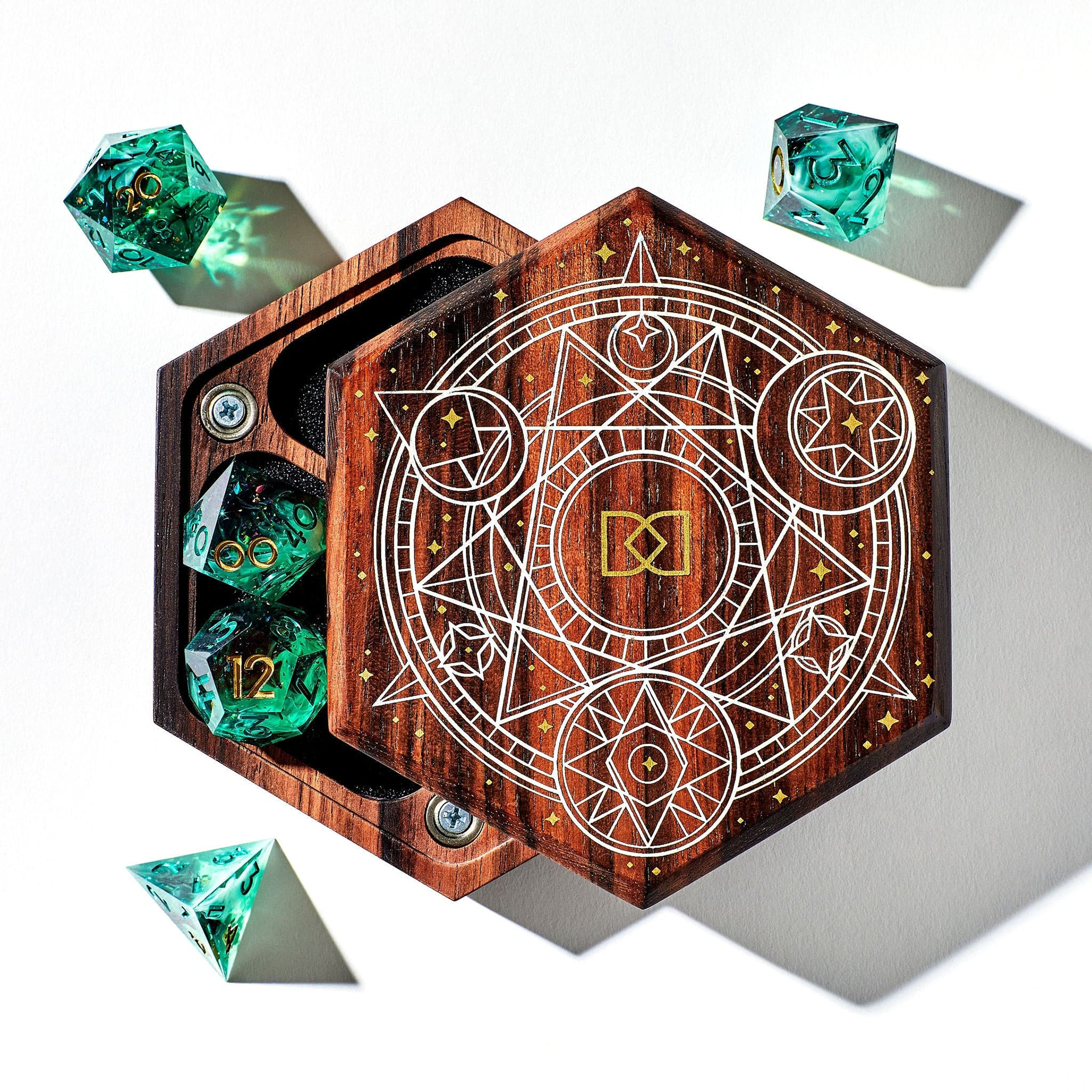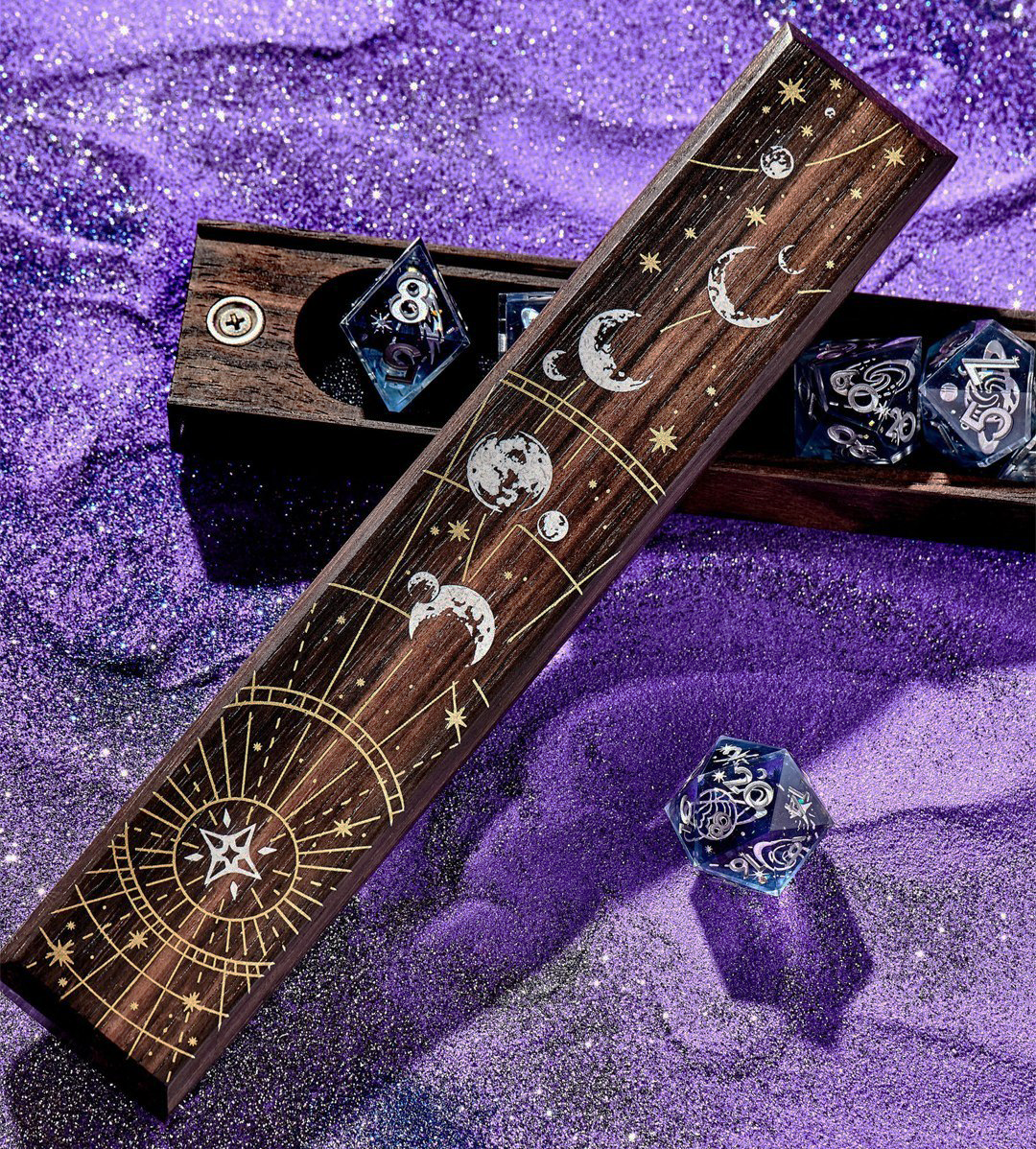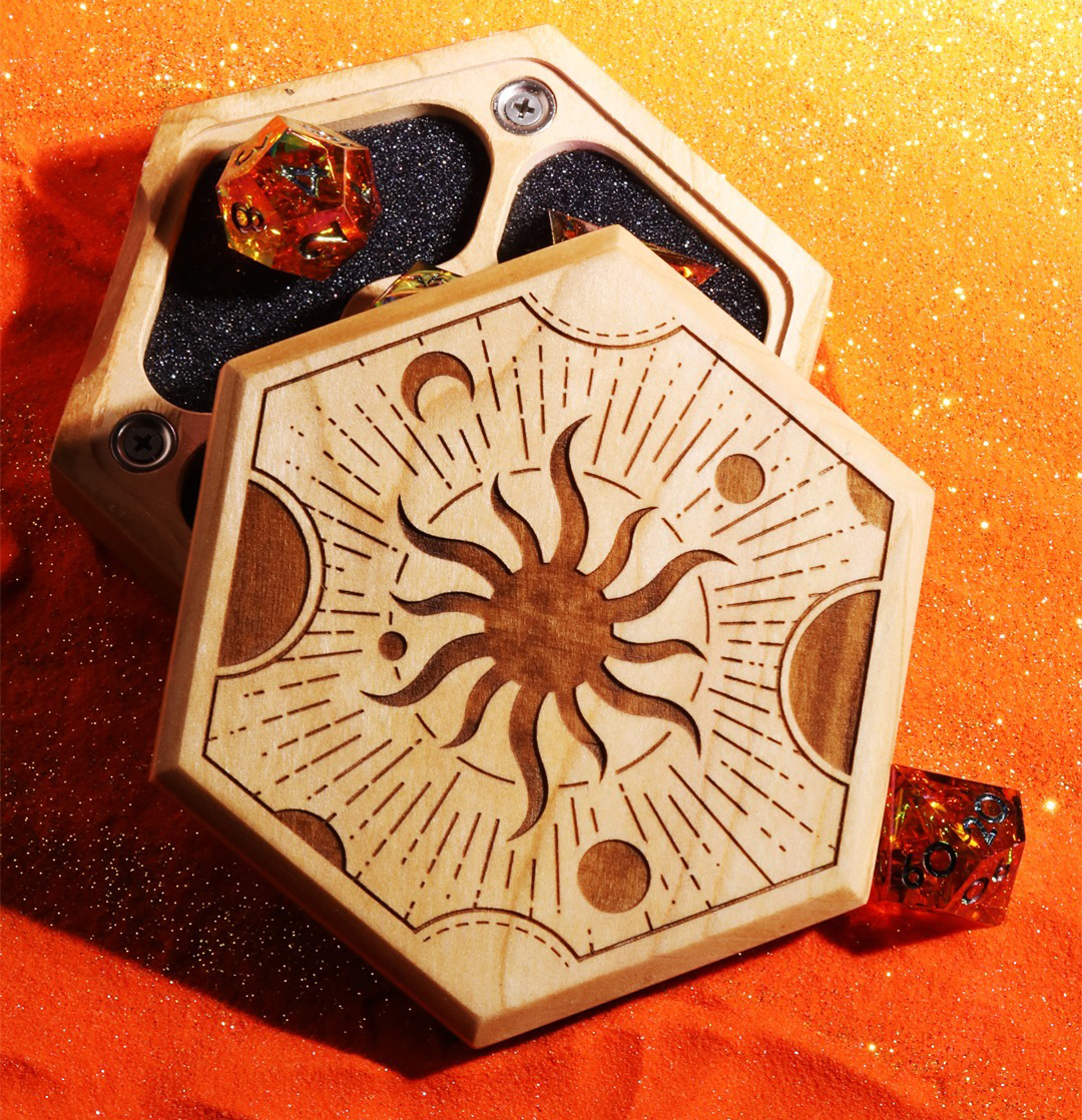 Designed graphics for inlaying into wood for Dispel Dice in collaboration with Wyrmwood Gaming.Â